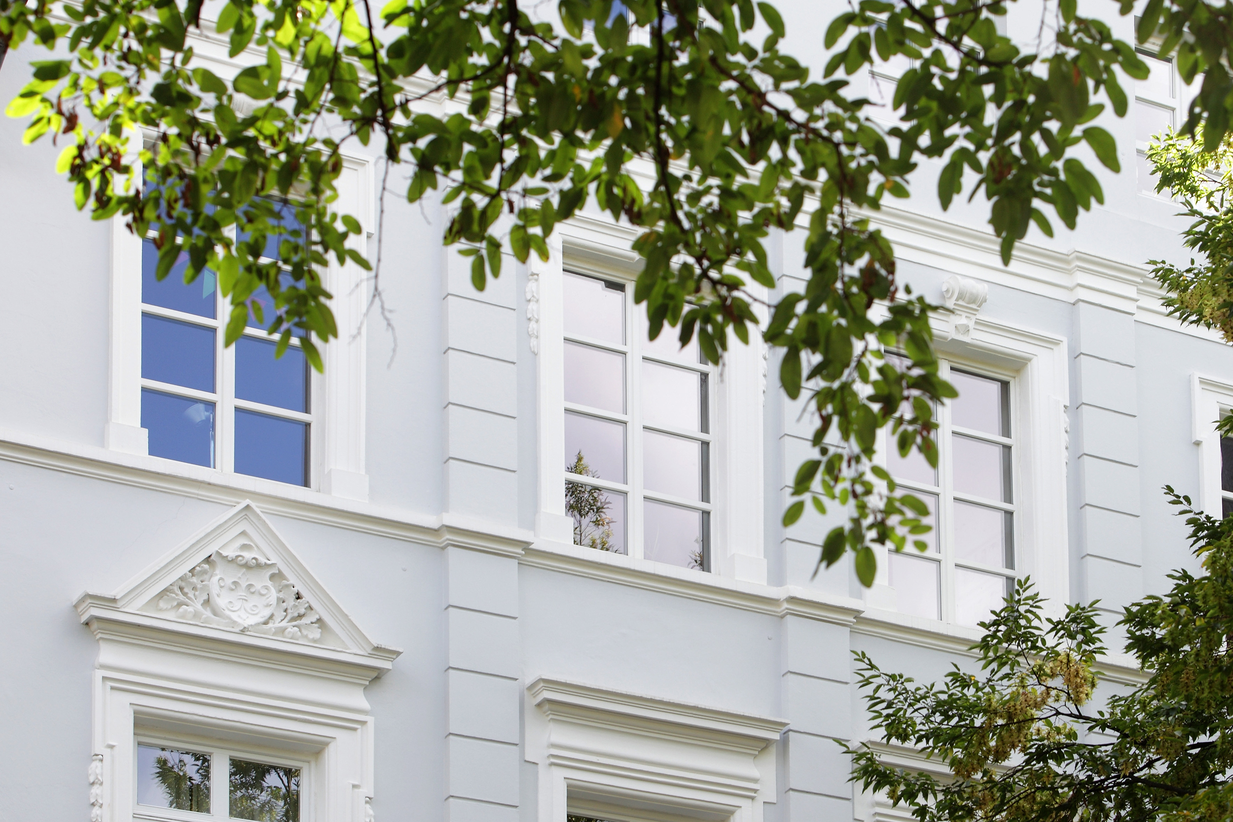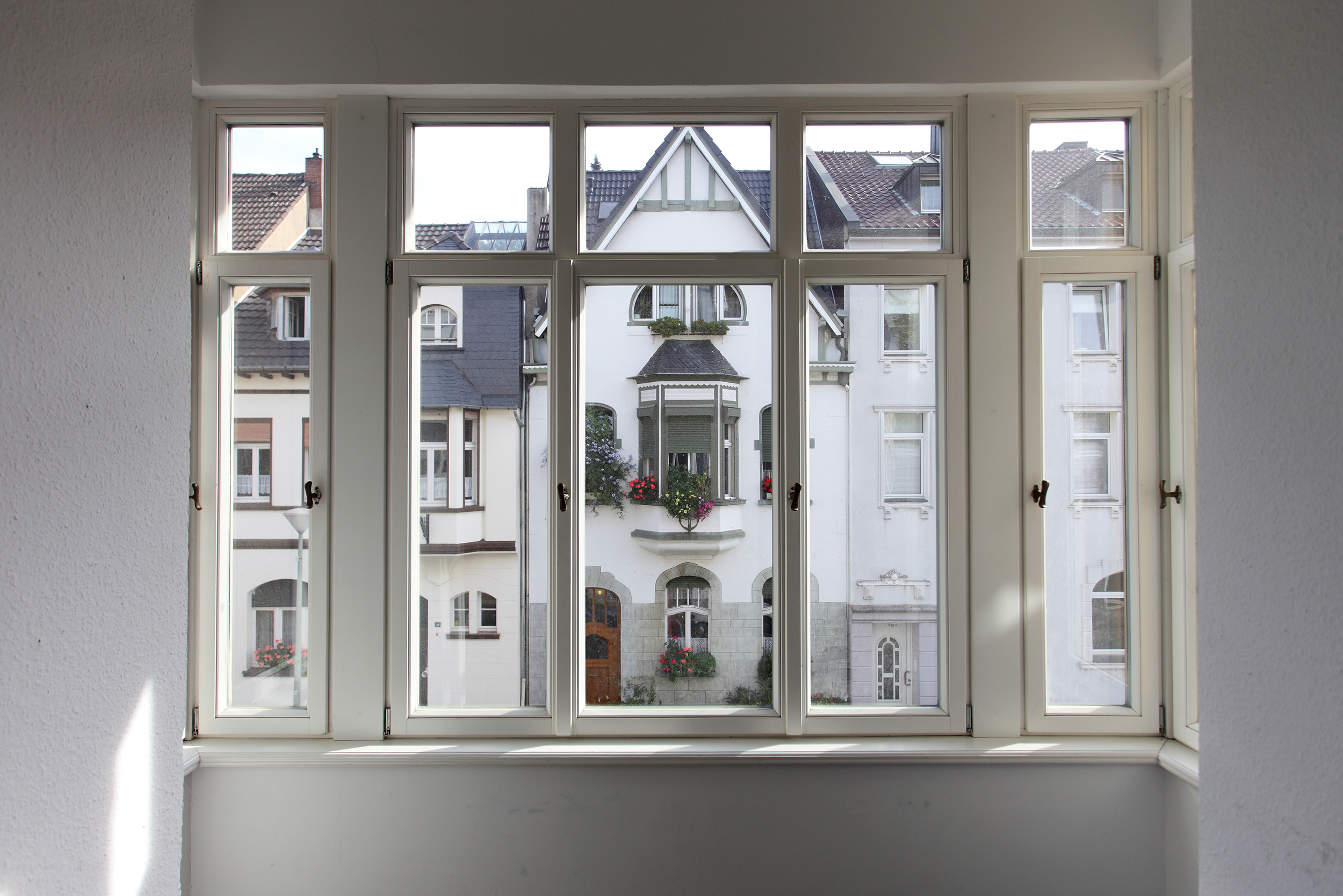 Berliner Warmfenster verfügen trotz einer Bautiefe von 90 Millimetern und einer guten Wärmedämmung (U-Wert Gesamtfenster 0,79 W/m2K) über sehr schmale Profile. Damit empfehlen sie sich für denkmalgeschützte Gebäude. Auch für Neubauten stellen sie eine elegante Möglichkeit dar. Schmale Fensterflügel mit und ohne Sprossen lassen sich formschön realisieren.