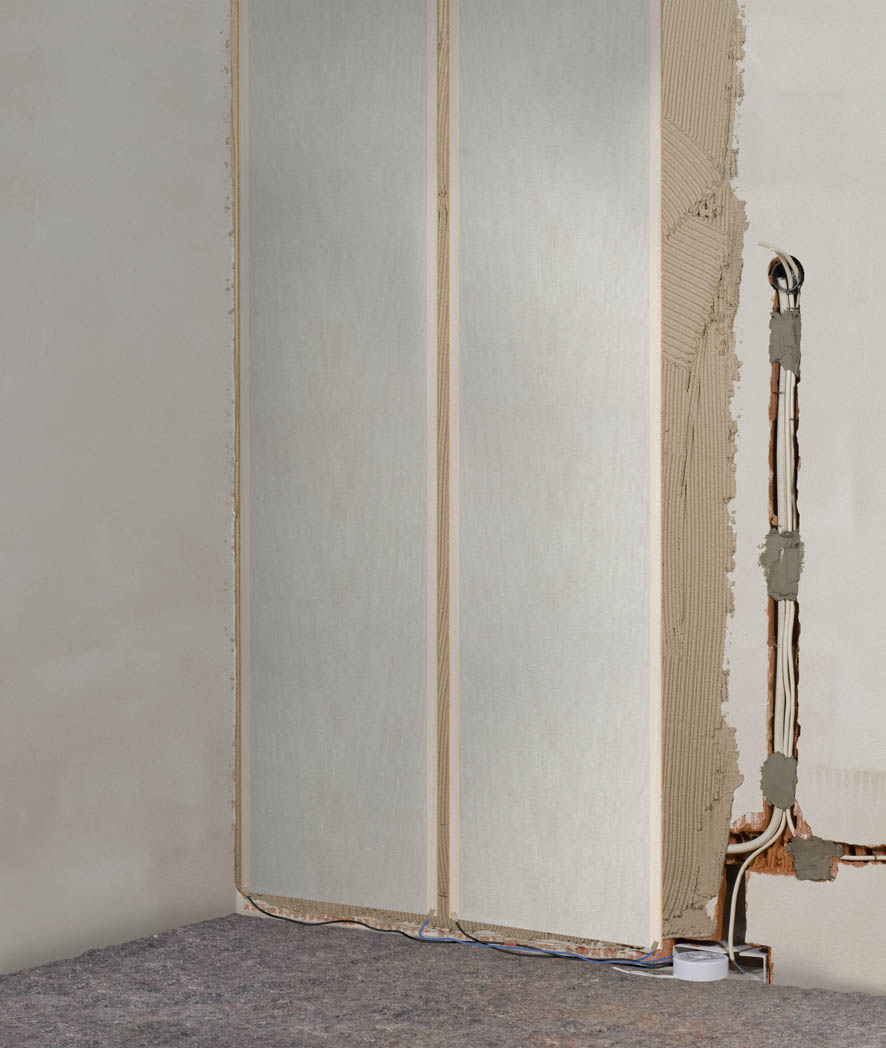 Die Carbon-Flächenheizung ergänzt sich ideal mit der Holzfaser-Dämmplatte UdiClimate, die mit ihren Klimakammern zugleich als Wärmespeicher fungiert.