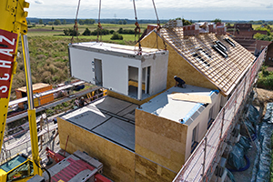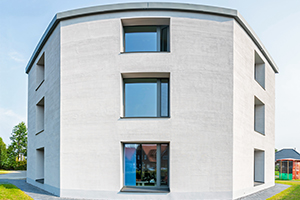 Monolithische Außenwände und Naturkalk-Putz: Achteckiges Bürogebäude im niedersächsischen Garrel kommt ohne Heizung und Lüftungsanlage aus