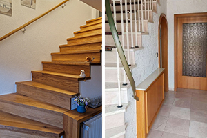 Statt steiler, ausgetretener Stufen: Moderne Holzkonstruktionen führen sicher und bequem ins Untergeschoß.
