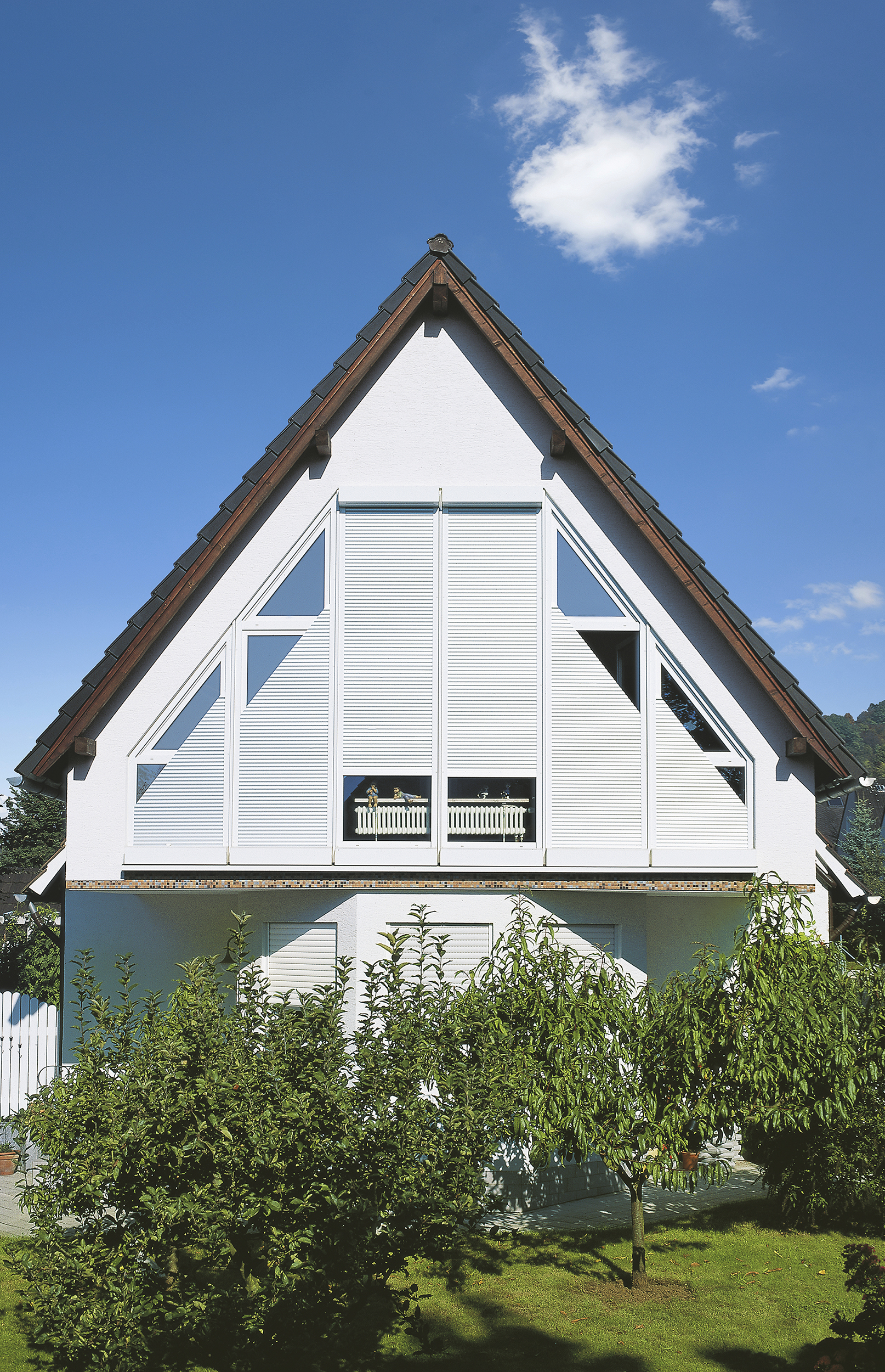 Bei Sonnenschein erwärmen sich die Fensterscheiben und werden zum großflächigen Heizkörper. Einen effizienten Schutz bieten außen angebrachte Rollläden. Jalousien oder Raffstores zwischen den Fensterscheiben sind weit weniger leistungsfähig, da sich das äußere Glas trotzdem aufheizt. Außenrollläden lassen sich auch noch nachträglich anbringen und sind somit eine gute Lösung für Bestandsbauten.