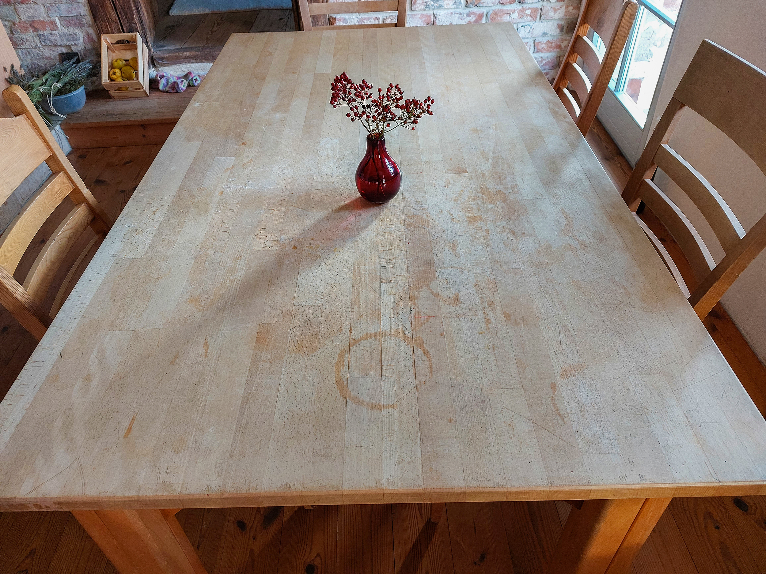 (pr-jaeger) Flecken auf geölten Holzoberflächen wie Tischen oder Arbeitsplatten lassen sich einfach wegzaubern und bei richtiger Pflege sogar von vorneherein vermeiden: