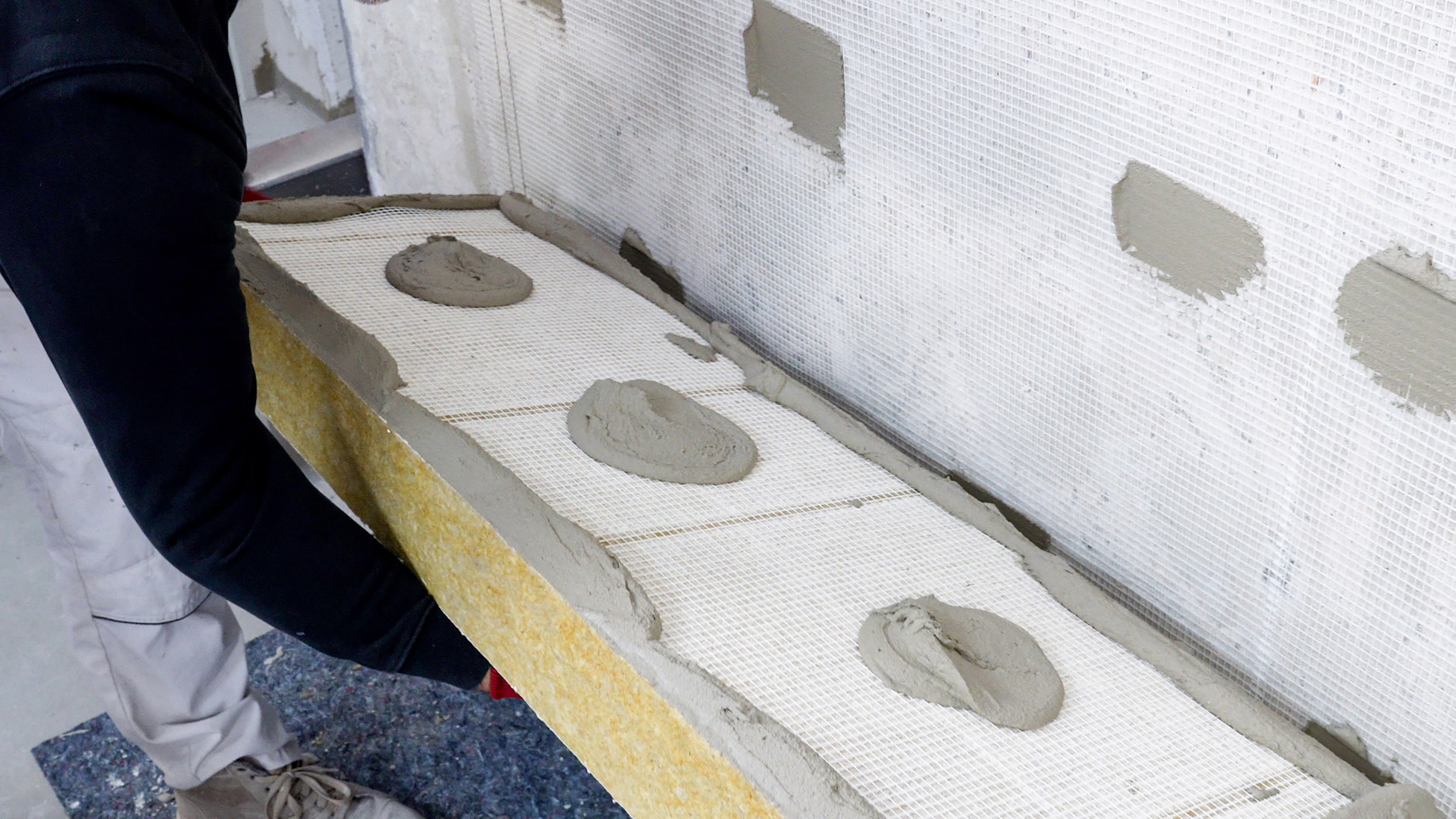 Die Verarbeitung fügt sich nahtlos in die gewohnten Abläufe des Fachunternehmers ein. Das System wird als klassisches geklebt/gedübeltes Steinwolle-WDVS verarbeitet, also mit vertrauten Arbeitsgängen von der Untergrundvorbereitung über Kleben, Dübeln, Armieren bis zur fertigen Oberfläche. Spezielle Werkzeuge oder zusätzliche Verarbeitungsgeräte sind nicht erforderlich.