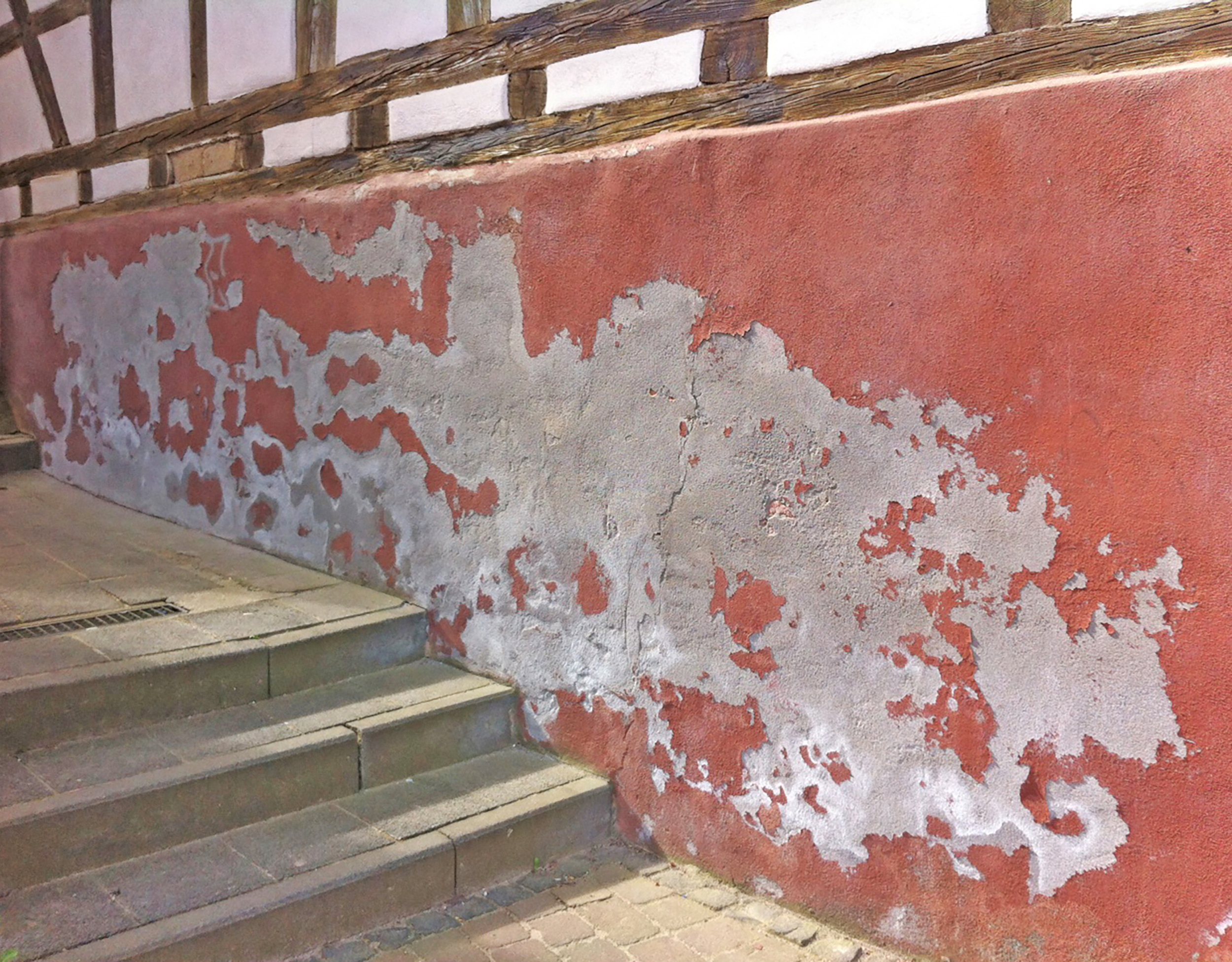 Doch es gibt zwei Schwierigkeiten: Während des Trocknens können Salze aus dem Untergrund in die frische Putzschicht eindringen. Das reduziert den Feuchteschutz und die Beständigkeit gegenüber Salzen.