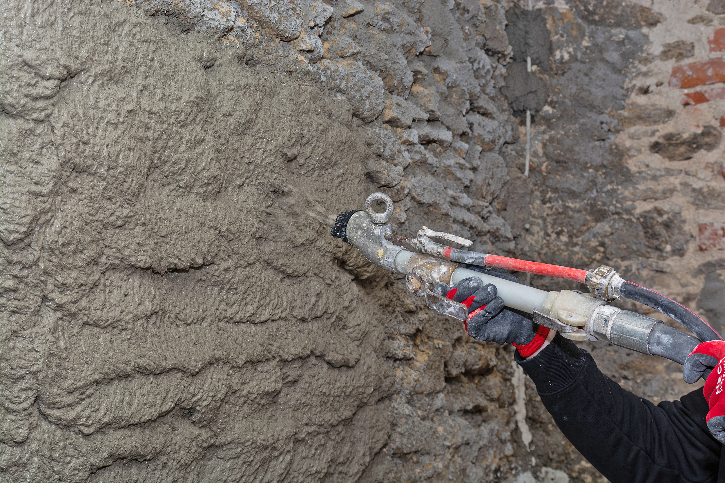 Das von Heck Wall Systems entwickelte Sanierputz-System Rajasil SP5 löst diese Probleme. Der Putz erweist sich schon während des Trocknens als wasserabweisend. Durch eine spezielle Porengeometrie verdunstet das Wasser nicht nur an der Putzoberfläche, sondern im gesamten Querschnitt. Das Ergebnis ist ein schnelles und gleichmäßiges Abbinden. Zudem ist Rajasil SP5 auch ein Wärmedämmputz. Die Oberflächentemperatur der Wände wird erhöht und Raumfeuchte kann sich nicht so leicht niederschlagen.