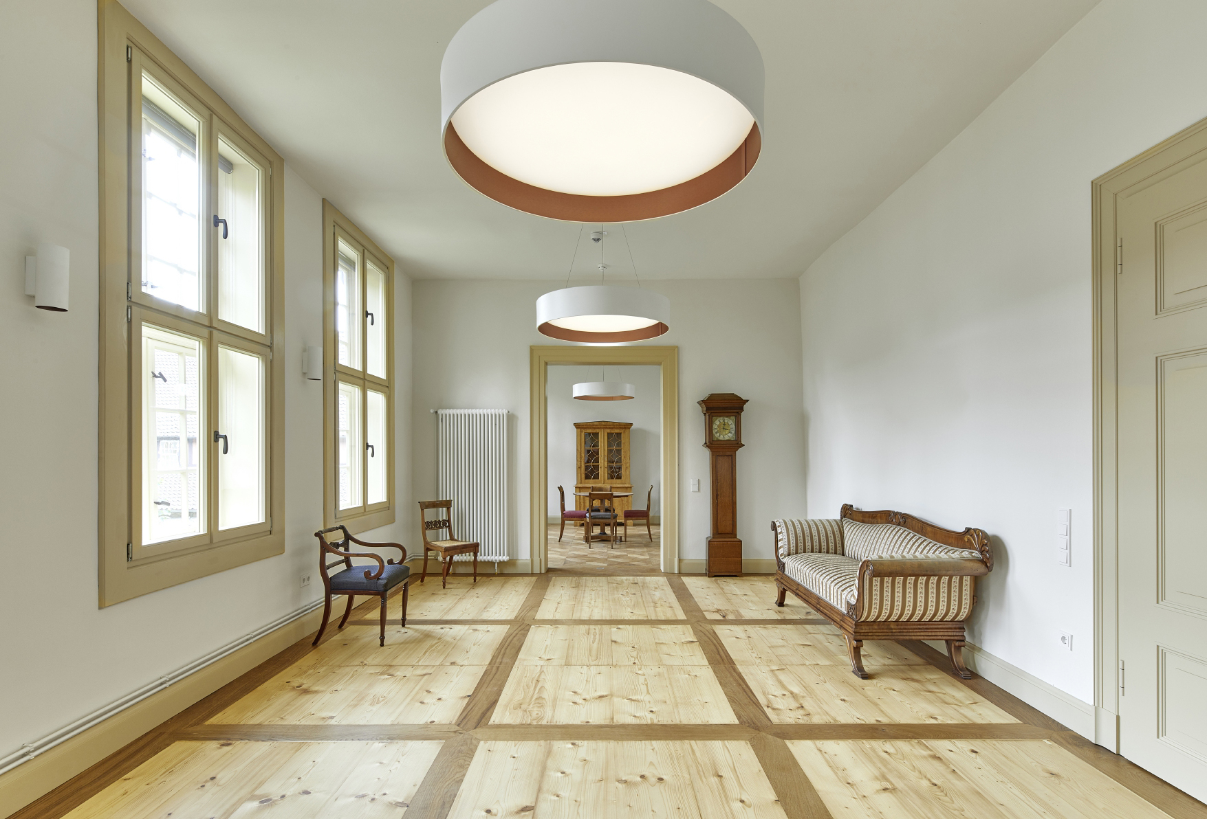 „Bei allen Maßnahmen stand der Erhalt der historischen Bausubstanz im Vordergrund“, so Maik Ebert, Restaurator im Handwerk und Projektleiter bei Kramp & Kramp aus Lemgo. Die Spezialisten für Altbauten, Restaurierung und Denkmalpflege führten auch die umfangreichen Restaurierungsarbeiten von Wandvertäfelungen, Fachwerk, Holzbalkendecken und Dielenböden sowie Maurerarbeiten aus.