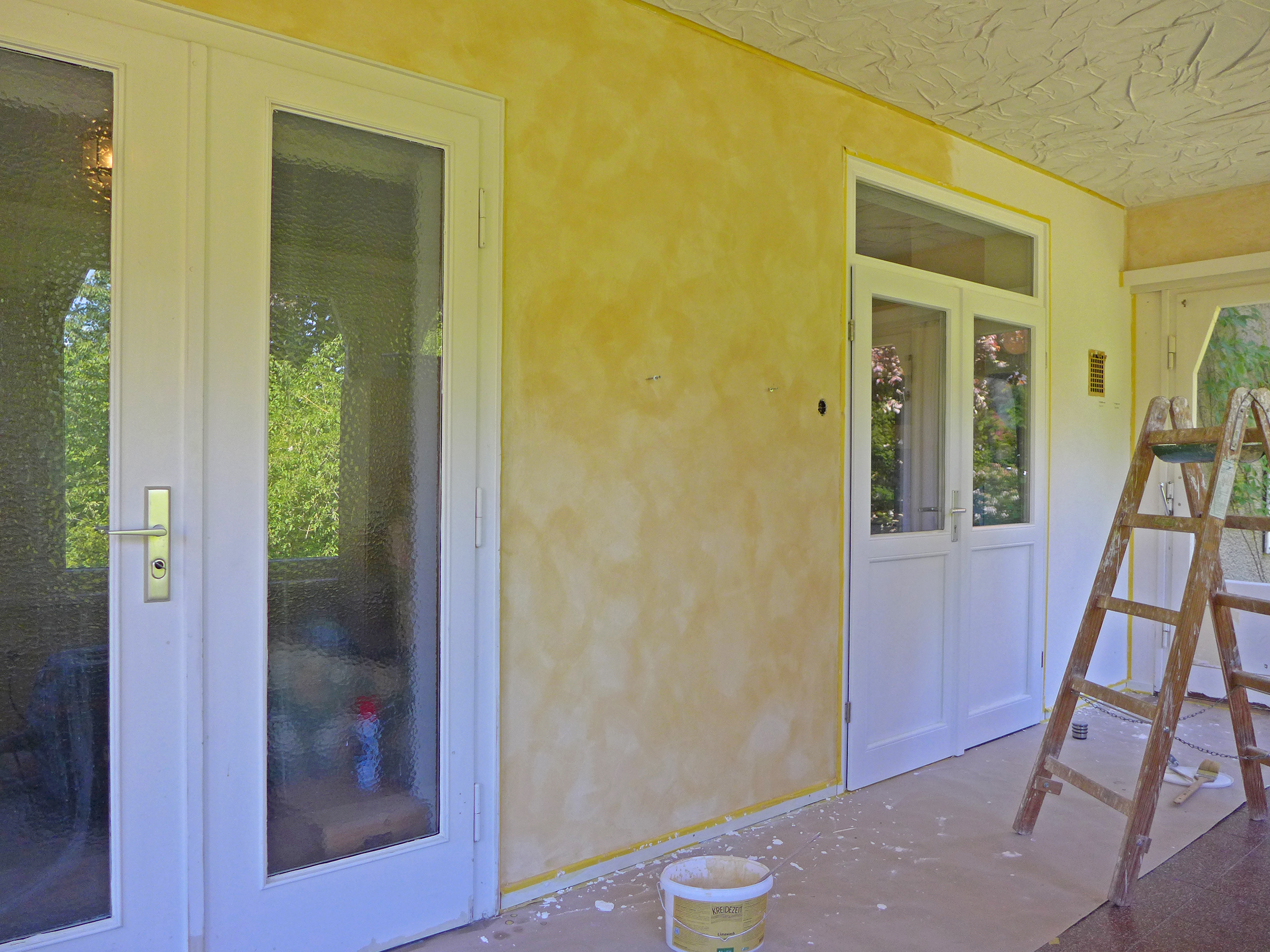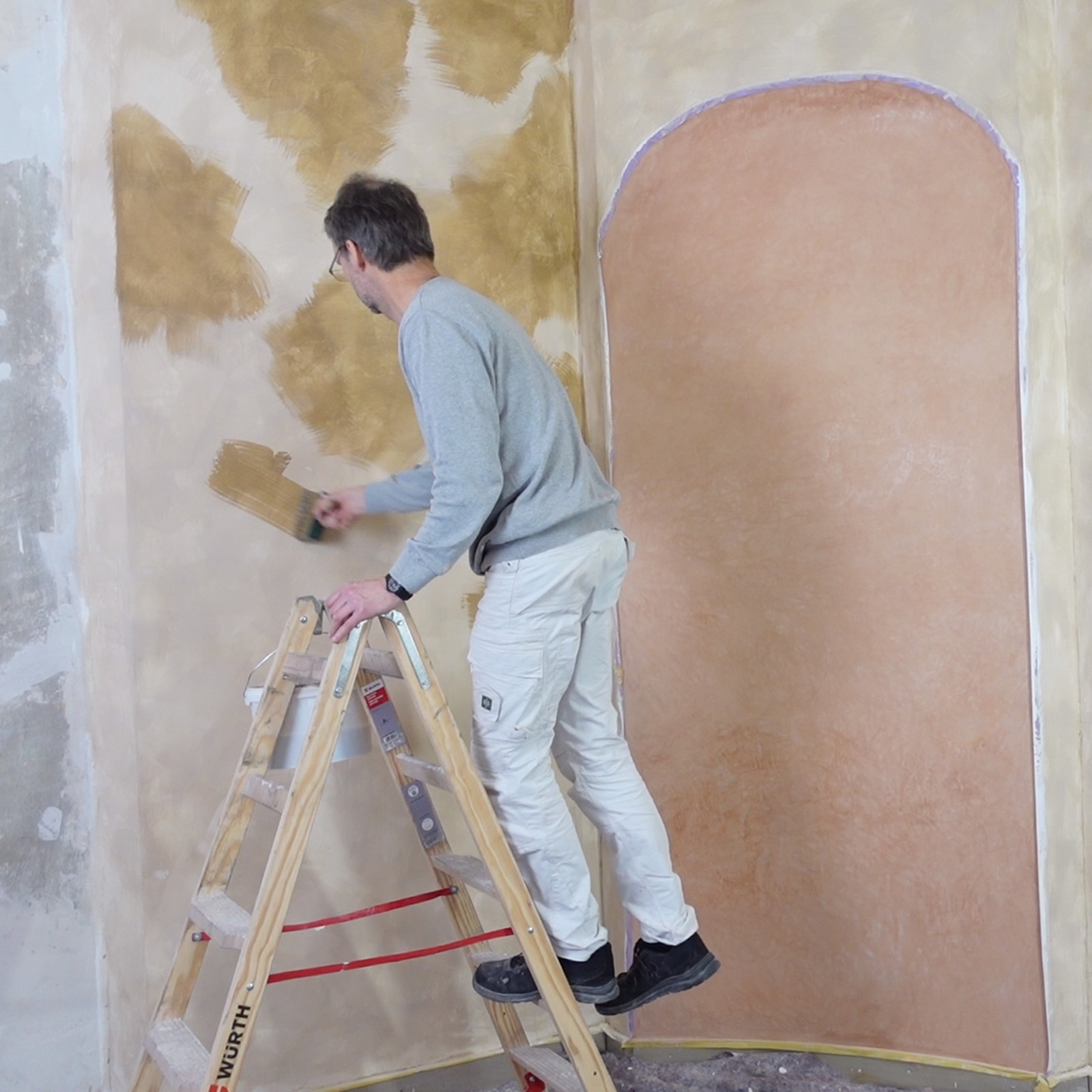 „Man macht hier genau das, was man als Maler normalerweise vermeiden würde. Je ungleichmäßiger der Auftrag, desto lebendiger das Ergebnis,“ erklärt Bettentrup. Für ein optimales Resultat empfiehlt er zwei Anstriche mit einer kurzen Trockenzeit von drei bis vier Stunden dazwischen.