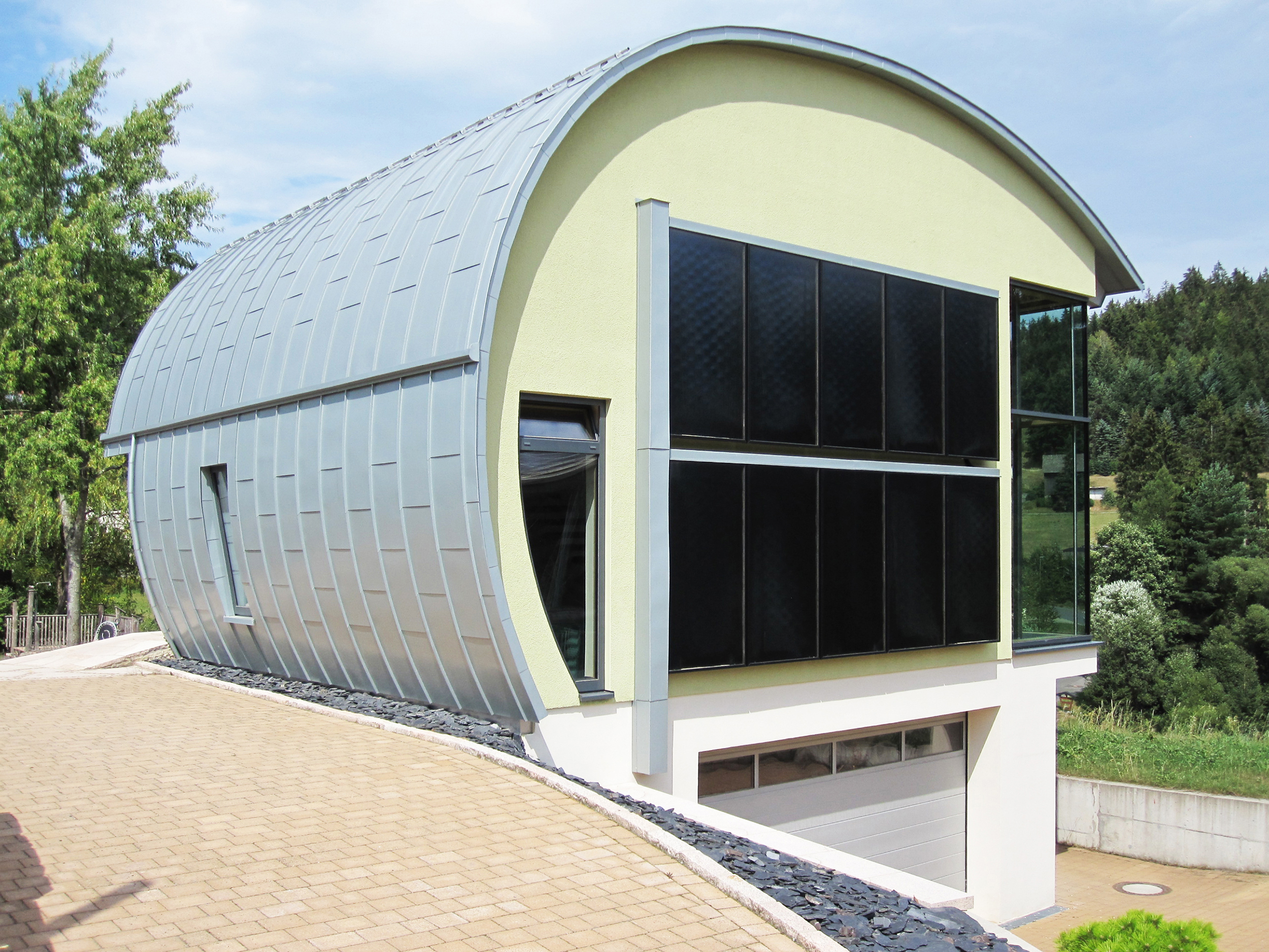 Einblasdämmungen lassen sich in verschalte Hohlräume füllen, auch bei außergewöhnlichen Hausformen. (Bild: Climacell)