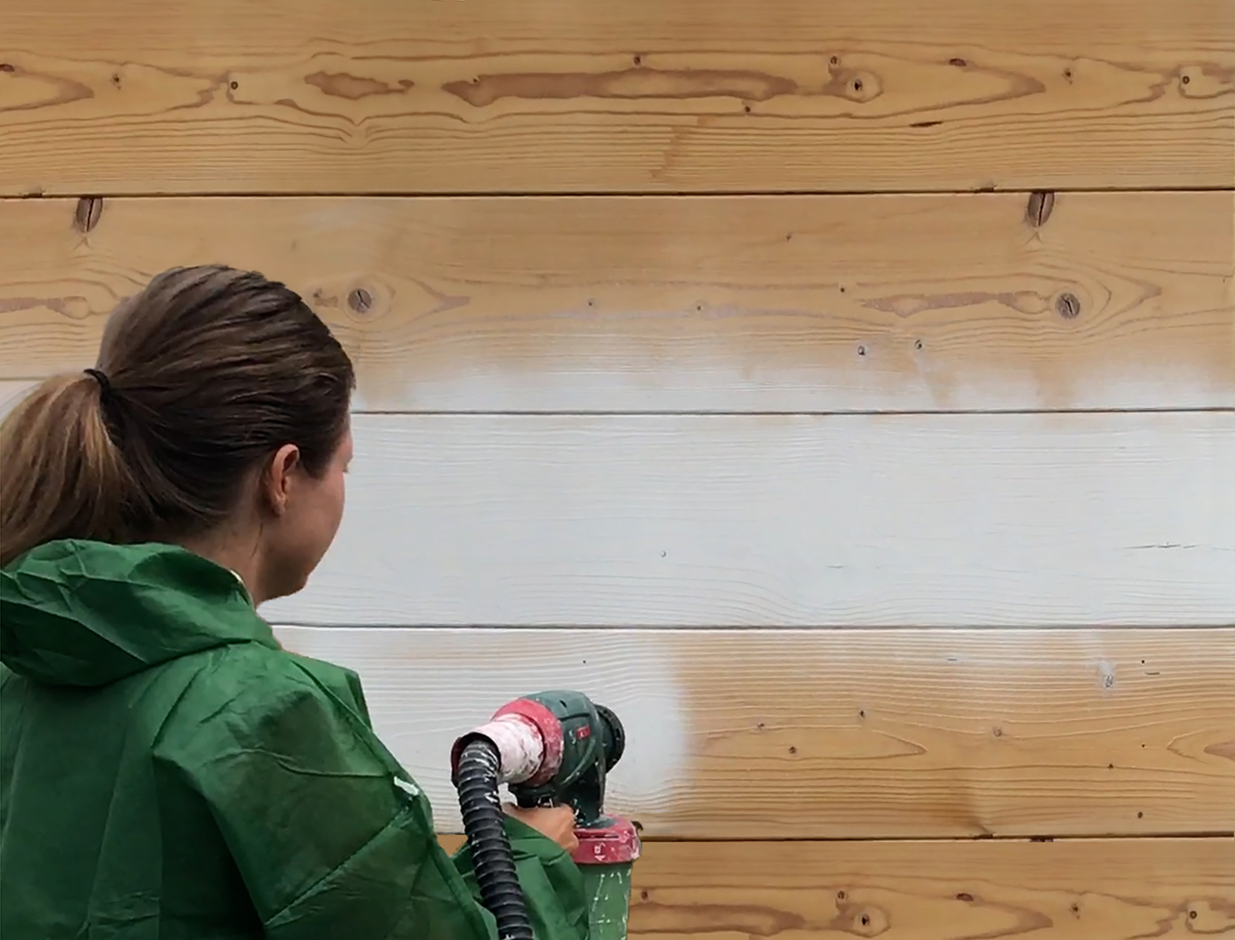 Für die Aufhellungskur selbst braucht man nur eine Rolle oder einen Aqua-Pinsel mit fein gespleißten Borsten, an denen alle Bestandteile gut haften. Auch das Aufspritzen des Bienenwachsbalsams ist möglich. Es erlaubt ein ansatzfreies Arbeiten an den Kanten und in Ecken. Dazu genügt eine einfache Spritzpistole aus dem Baumarkt.