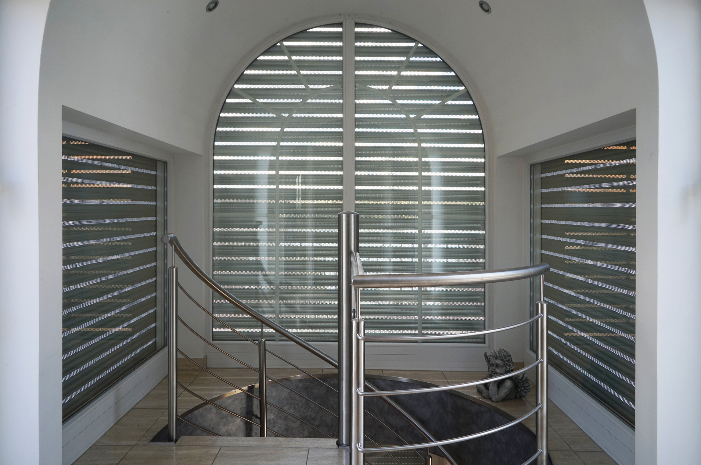 „Tatsächlich finden wir immer häufiger knifflige Montagebedingungen bei der Beschattungsfrage vor“, bestätigt Steffen Schanz vom gleichnamigen Schwarzwälder Spezialisten für Alurollladensysteme. So kommt es vor allem bei älteren Häusern durchaus vor, dass sich am oberen Teil des Fensters schlicht kein Platz für einen Rollladen und den dazugehörigen Kasten findet. Bei Häusern neueren Datums kommt die vermehrte Verwendung von halbrunden, runden, mehreckigen oder sogar asymmetrischen Fensterformen dazu, was die Bedingungen für eine Rollladenlösung grundsätzlich erschwert. „Aus dieser Not haben wir eine Tugend gemacht“, so Schanz. „Möglich wurde dies, weil wir bei solchen Bedingungen die Rollläden von unten nach oben führen“. Vorteil: Die Rollladenkästen sind deutlich kleiner, was für den Bauherren ein deutliches Plus an Gestaltungsfreiheit mit sich bringt, eine erheblich dezentere Optik bietet und somit besondere Rücksicht auf die ästhetischen Bedingungen des jeweiligen Hauses nimmt. „Wir sind der wohl einzige Hersteller, der mit dieser Produktvielfalt wirklich alle Fensterformen bedienen kann“, so Schanz.