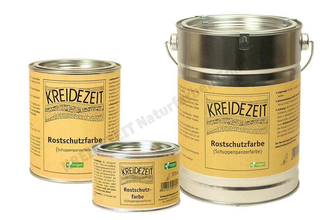 Aufhalten lässt sich dieser Prozess nur durch einen guten Rostschutz. Die Wirksamkeit der Kreidezeit-Rostschutzfarbe wurde in einem Test des ARD-Verbrauchermagazins Ratgeber Technik bestätigt: Unter den 33 getesteten Rostschutzfarben belegte sie Platz eins. Sie besteht hauptsächlich aus Eisenglimmer und Leinöl. Bei Eisenglimmer handelt es sich um natürlich vorkommende, schwarzglänzende Pigmente mit einer ausgeprägten Schuppenstruktur. Auf ihnen beruht die hervorragende Rostschutzwirkung der Farbe: Wie ein Schuppenpanzer legen sich die Pigmente über die Fläche und verhindern so das Eindringen von Sauerstoff und Wasser. Daher wird die Farbe auch als „Schuppenpanzerfarbe“ bezeichnet. Selbst die UV-Strahlung kann den Anstrich nicht zerstören.