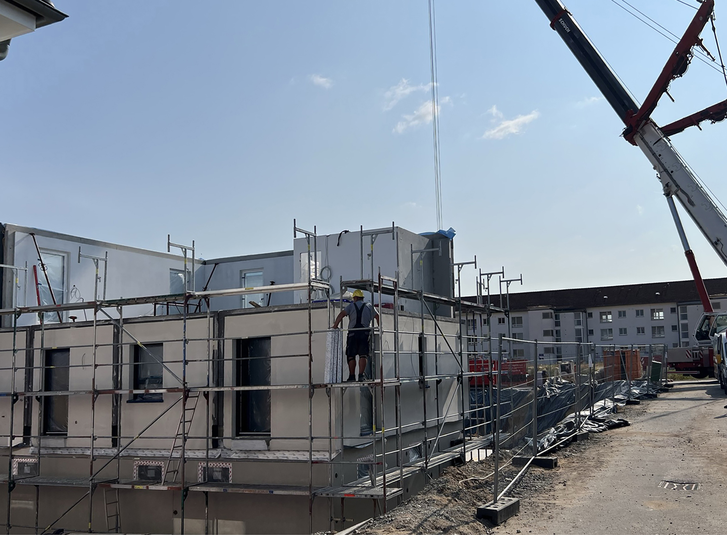 Anders sah es bei den privaten Bauherren aus. Die ersten zogen schon ab Juni ein. Innerhalb von drei Monaten waren alle zehn Einfamilienhäuser der Baureihe ICON einzugsbereit. In den modularen Beton-Häusern sind sogar schon Versorgungsleitungen und Elektroanschlüsse in der Wand verlegt.