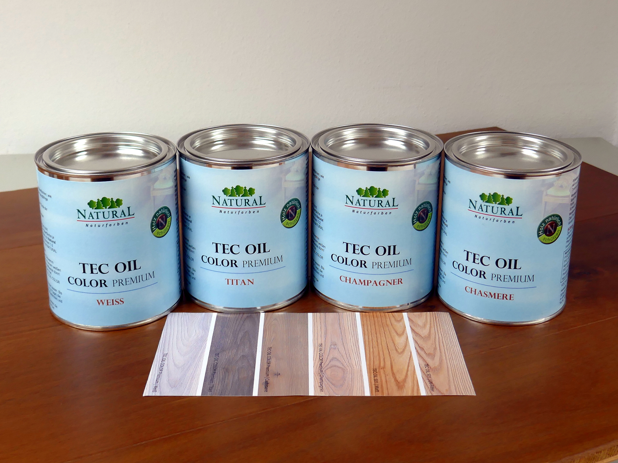 Bislang war Tec Oil farblos (für farblos geölte Oberflächen), mit UV-Filter (für helle Hölzer und weiß pigmentierte Oberflächen) sowie in mehreren Farbtönungen verfügbar. Mit Weiß, Champagner, Cashmere und Titan erweitern nun vier trendige neue Farbtöne die Gestaltungsmöglichkeiten. Für ein noch individuelleres Ergebnis lassen sich die Farbtöne untereinander mischen.