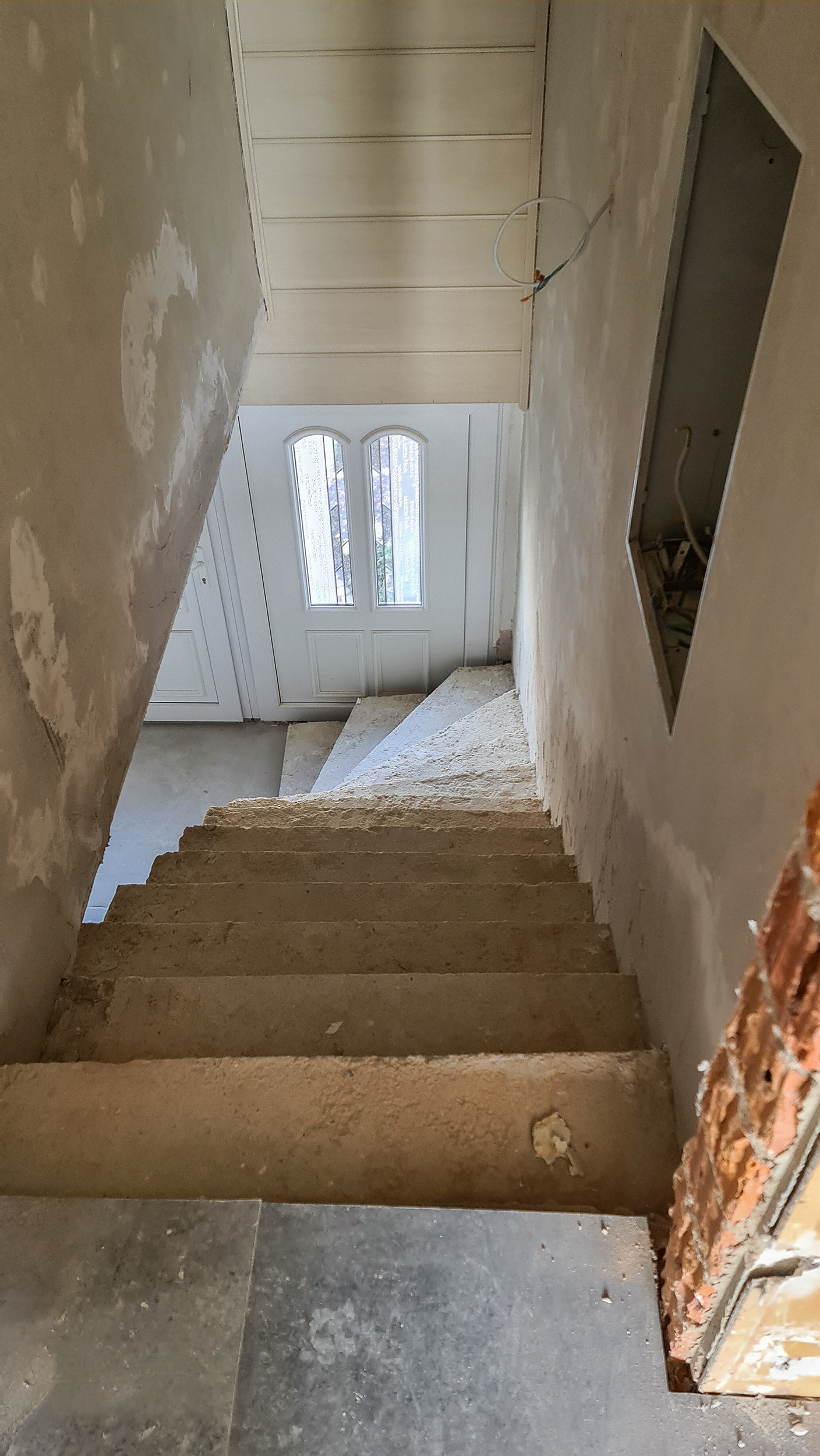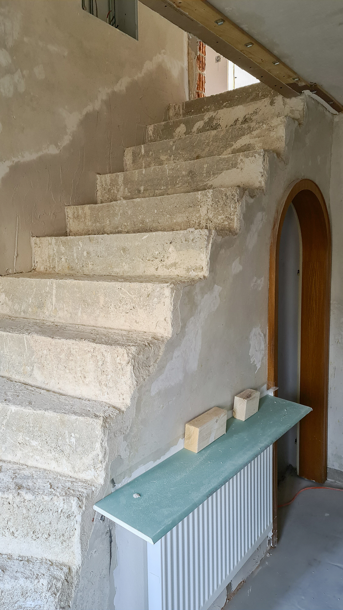 Der Hausherr entfernte die Marmorbeläge und die Geländerstäbe. Übrig blieben nackte Betonstufen, die der Erstbesitzer selbst gegossen hatte: Sie waren schief und verschieden hoch.