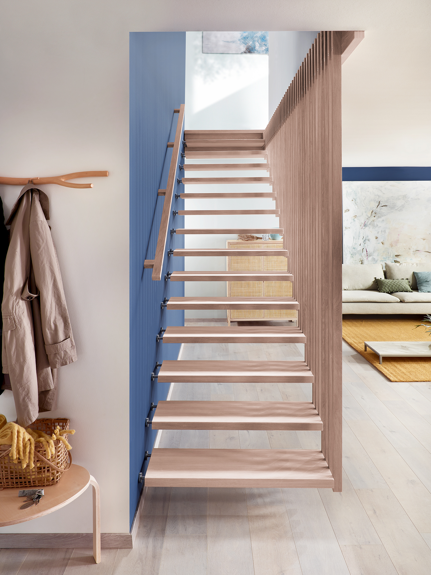 Treppen können ein richtiger Hingucker sein: Raffiniert gewendelte Aufgänge und dekorative Geländer avancieren optisch zum Mittelpunkt eines Raumes. Doch das passt nicht in jede Wohnung: Ein Beispiel, wie Treppenaufgänge dezent in den Hintergrund treten, ist die Leistentreppe Claustra, die die Treppenmeister-Partnergemeinschaft jetzt entwickelt hat.