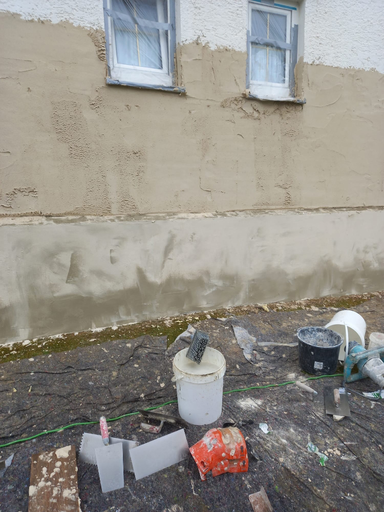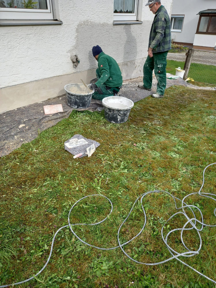 Bei einem 1902 erbauten ehemaligen Wohn- und Stallgebäude war das Mauerwerk durch aus dem Erdreich aufsteigende Feuchtigkeit stark durchfeuchtet und versalzen mit großflächigen Putzabplatzungen über die gesamten Wandlängen im unteren Bereich. Gebäude dieser Art verfügen meist über keine oder nur einfache Horizontalsperren, die zudem im Lauf der Jahrzehnte verrotten. So kann die Feuchtigkeit in den Mauern klettern. Man spricht dann von aufsteigender, kapillarer Feuchtebelastung des Baustoffes.