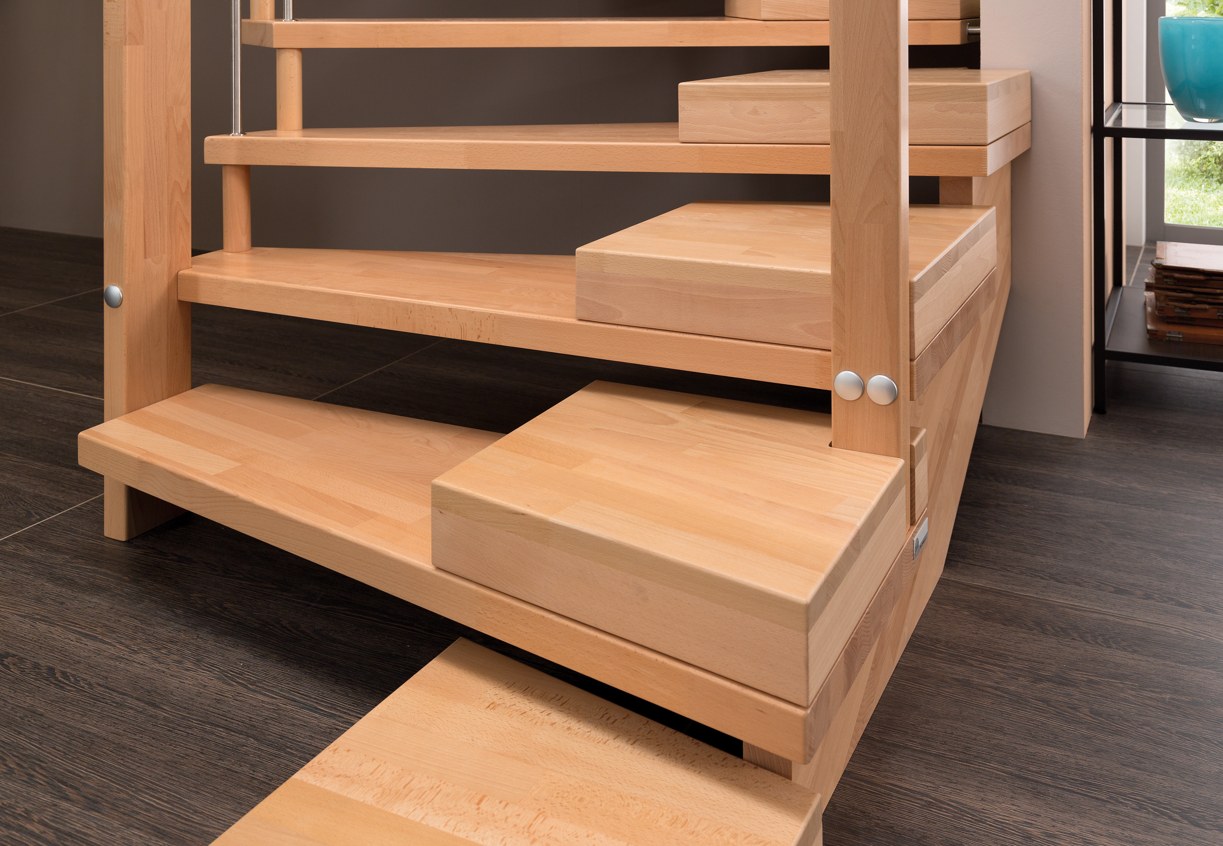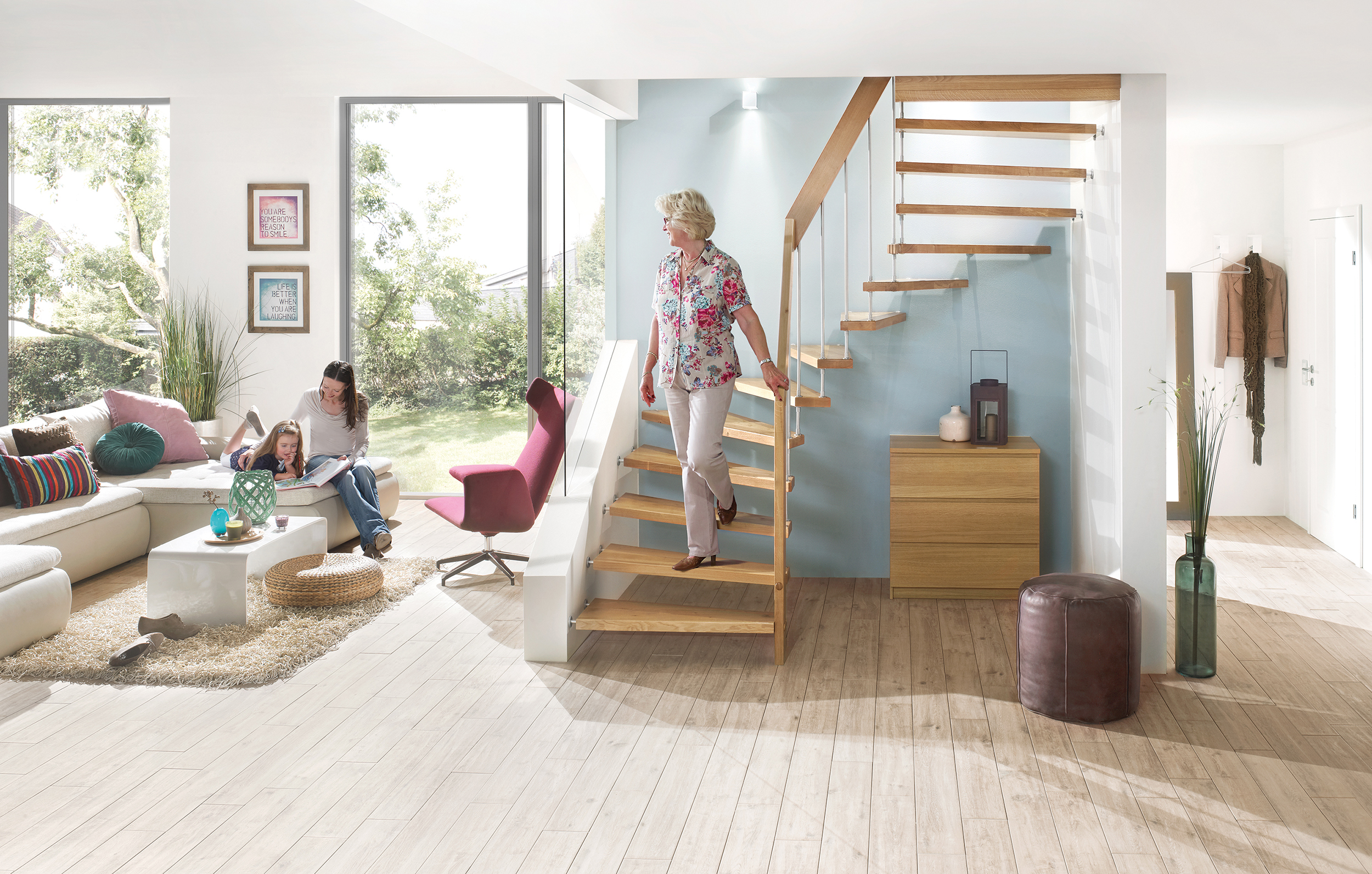 Gerade mit Blick auf das Älterwerden gibt es Möglichkeiten, um das Auf und Ab im Haus leichter und sicherer zu machen. Mit sogenannten Halbstufen lässt sich die Höhe halbieren, die mit einem Schritt überwunden werden muss. Das spart Kraft und sorgt für mehr Stabilität bei der Gewichtsverlagerung.