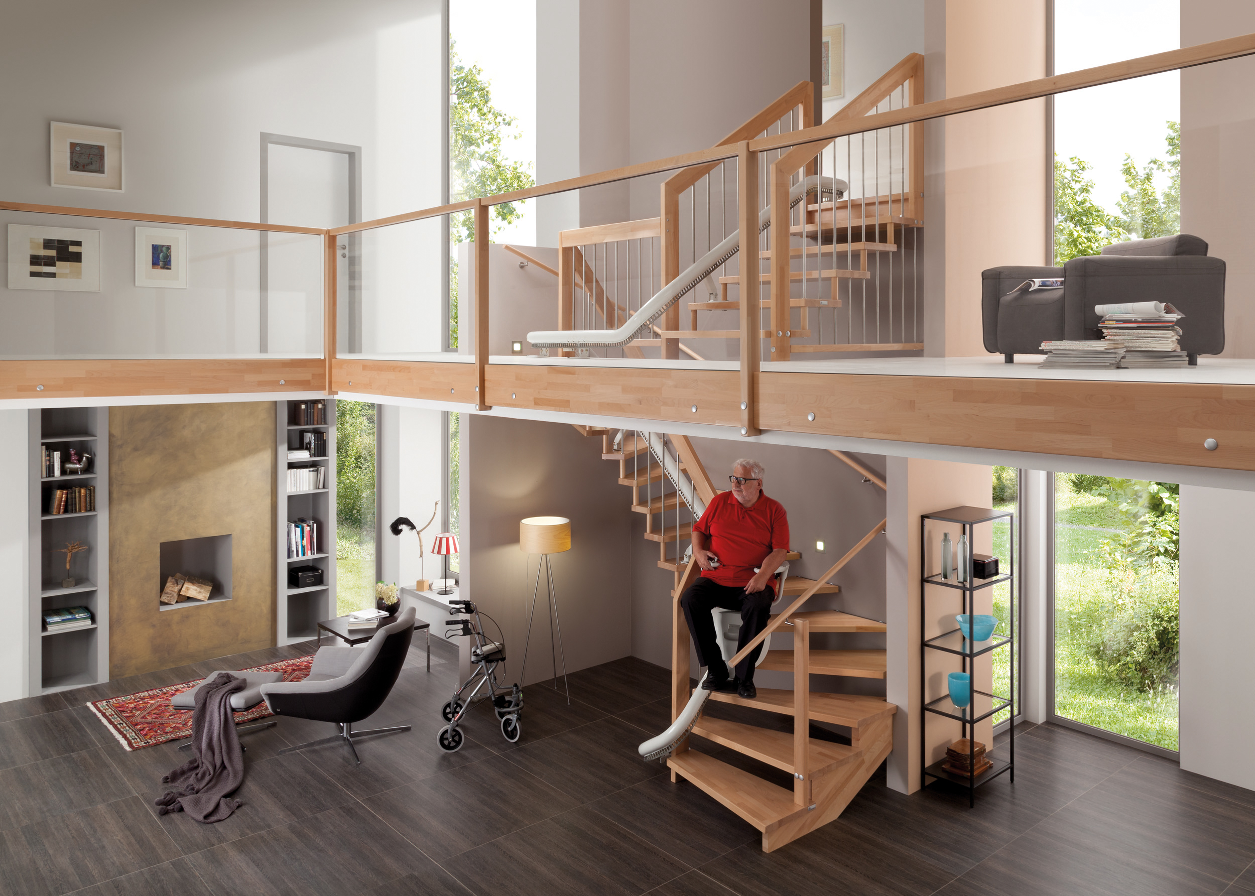 Klappt es mit dem Treppensteigen gar nicht mehr, lässt sich bei fast jedem Treppenmeister-Modell ohne weiteren Umbau ein Treppenlift installieren.